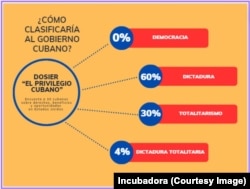 Incubadora solicitó este verano a 30 inmigrantes cubanos en Estados Unidos responder a seis preguntas que iban desde si consideraban haber recibido privilegios del gobierno estadounidense o si se habían sentido alguna vez discriminados en el país de acogida, hasta que calificaran al gobierno de La Habana en Totalitarismo, Democracia u otra cosa.